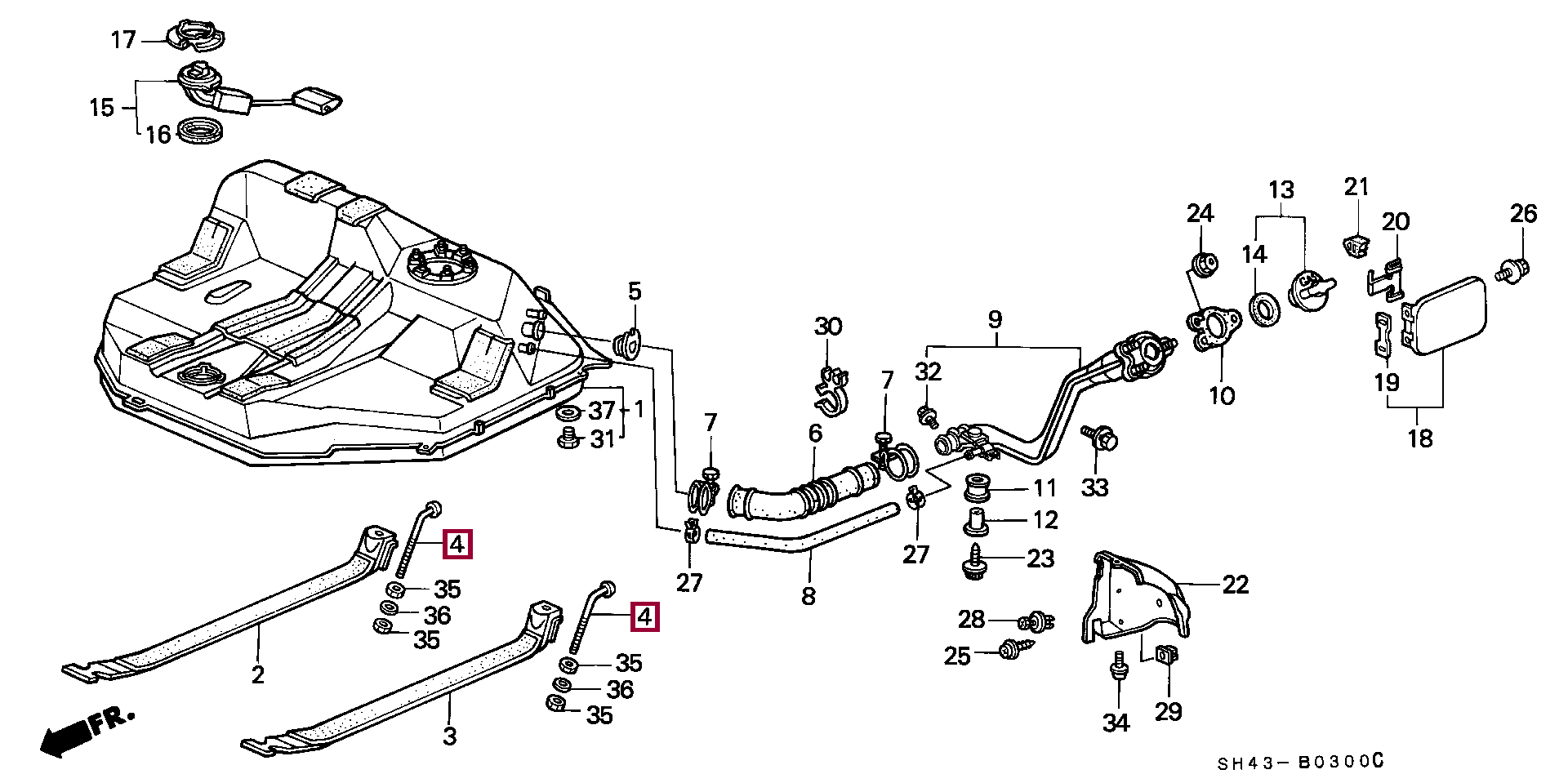 BOLT, FUEL TANK MOUNTING, 17525SH3010