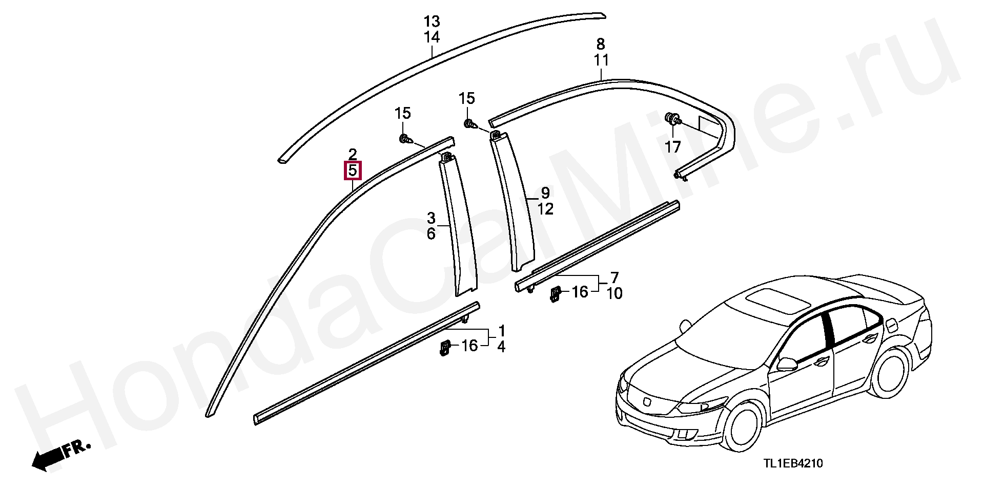 МОЛДИНГ В СБОРЕ, ПЕРЕМЫЧКА ОКНА ЛЕВ. ПЕРЕДН. ДВЕРИ, 72465TL0003