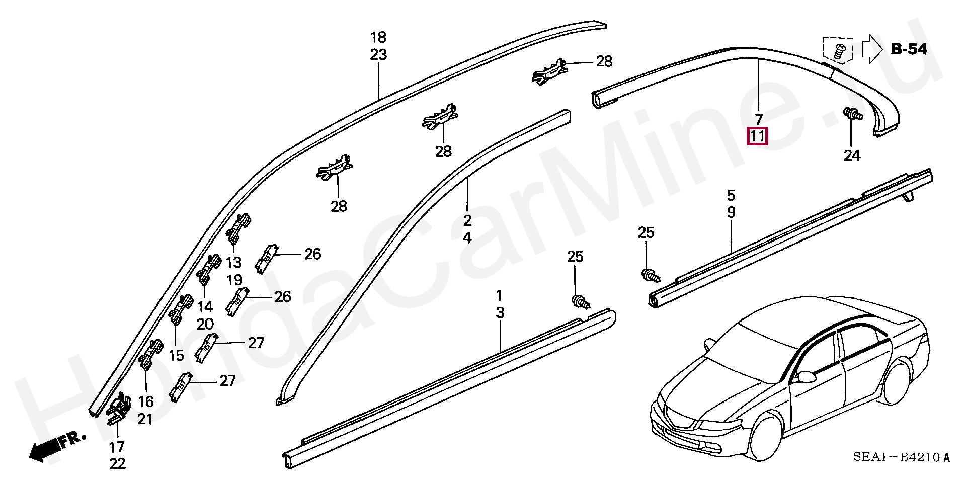 MOLDING ASSY., L. RR. DOOR SASH, 72961SEA003