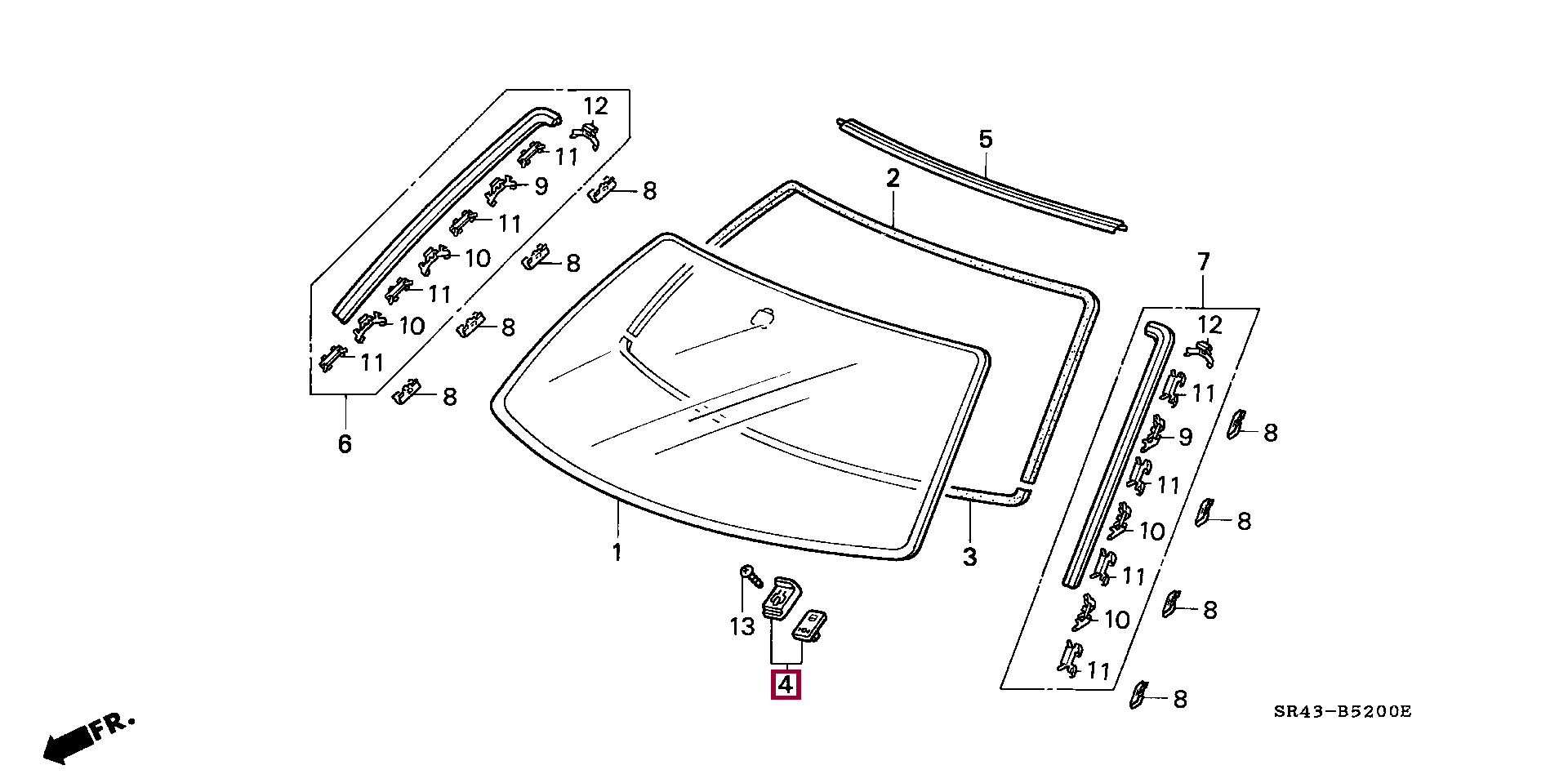 HOLDER, FR. WINDSHIELD GLASS, 73127SR3003