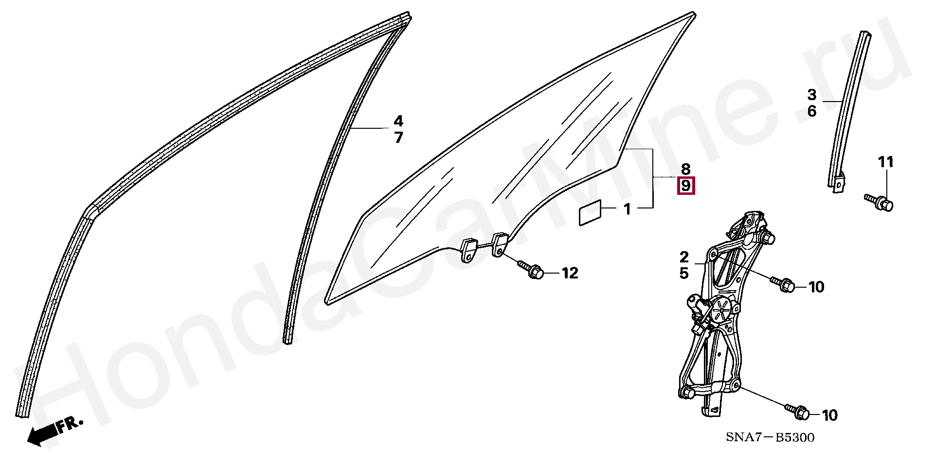 СТЕКЛО ПЕРЕДНЕЙ ЛЕВОЙ ДВЕРИ, 73350SNBE01