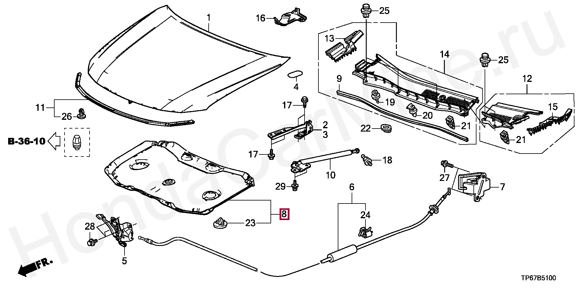 ИЗОЛЯТОР, КАПОТ, 74141TP6A00