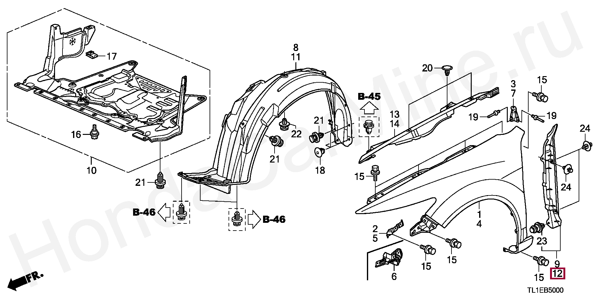 ОБОЛОЧКА, ЛЕВ. ПЕРЕДН. КРЫЛО, 74155TL0G00