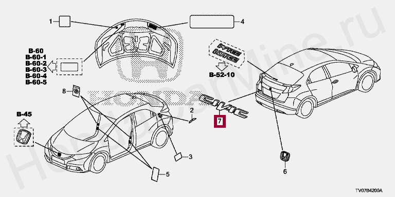ЭМБЛЕМА, ЗАДН. (CIVIC), 75722TV0E01